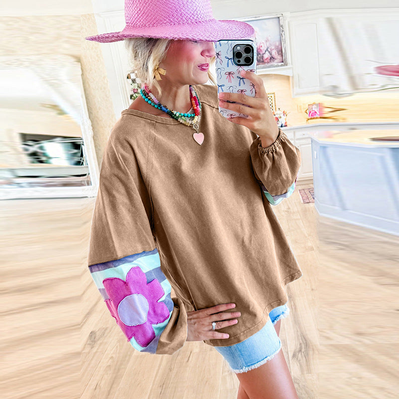 Refresh your casual wardrobe with this loose-fitting floral pullover sweater for women. Featuring beautiful contrast color stitching and a comfortable round neckline, it’s perfect for layering over jeans, skirts, or dresses, creating a stylish sweaters outfit. Ideal for women’s fashion casual or fall and winter outfits for women, this versatile pullover adds subtle sweaters aesthetic with a touch of Japanese and Korean street fashion influence.
