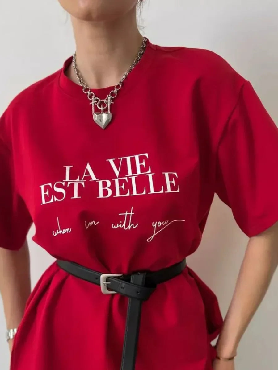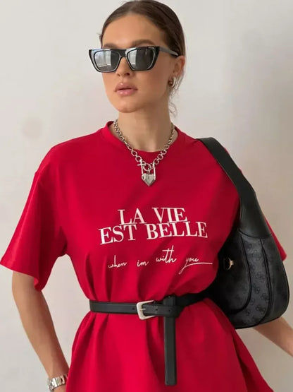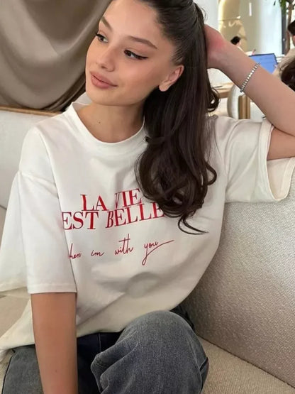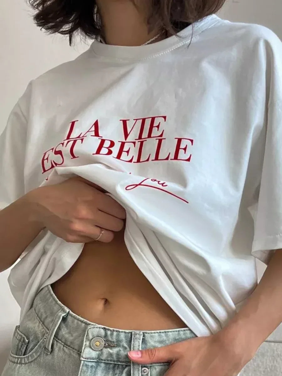 LA VIE EST BELLE Graphic Tee – Women’s Korean Style Cotton T-Shirt, Casual Summer Outfit