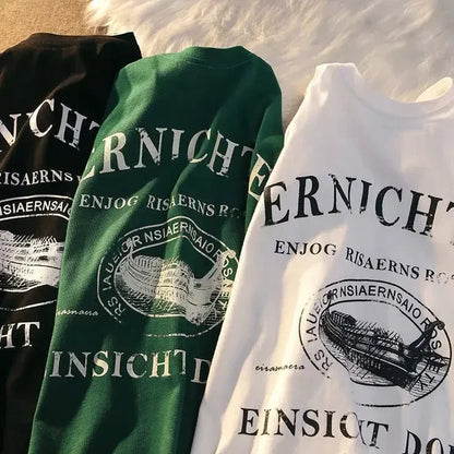 Featuring a bold letter print, trendy applique details, loose fit, and classic O-neck, it delivers relaxed, effortless style ideal for Pinterest-inspired casual wear, jeans or skirt outfits, and layered looks. With full-length sleeves and regular length, it’s versatile for any season, perfect for middle-aged women seeking refined casual fashion.