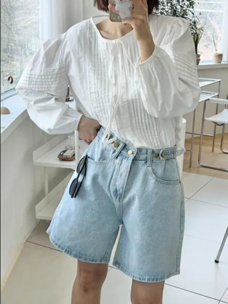 High Waisted Loose Fit Denim Shorts Women – Streetwear Summer Outfit