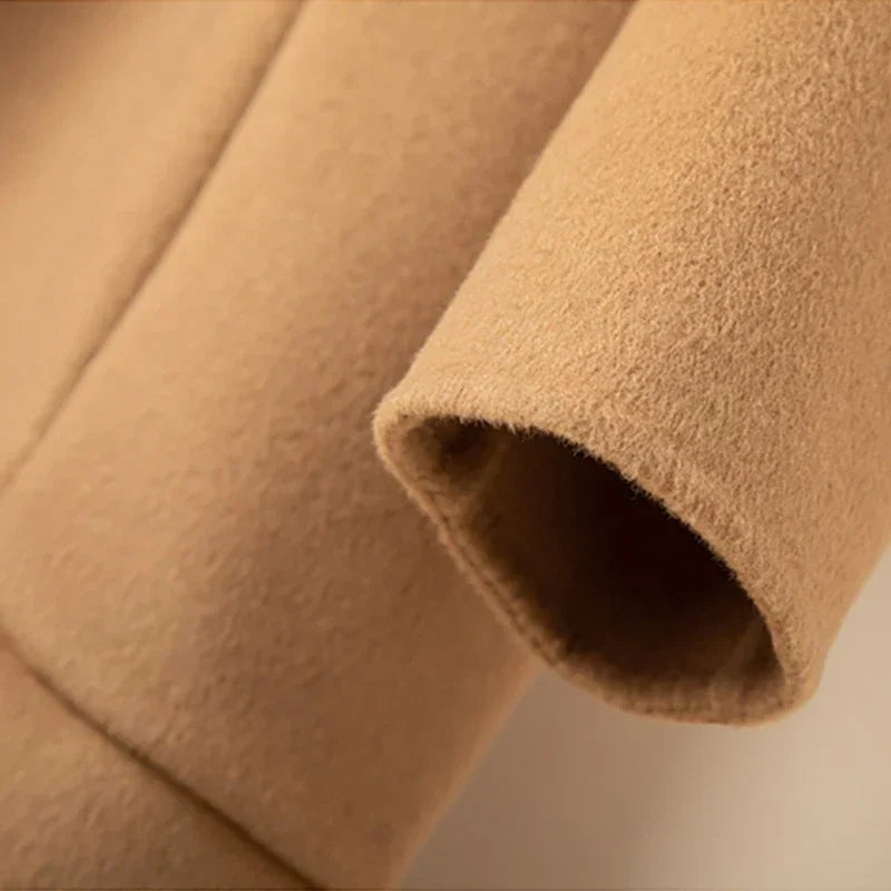 Women’s Wool Blend Long Trench Coat – Double-Breasted Fall Outerwear