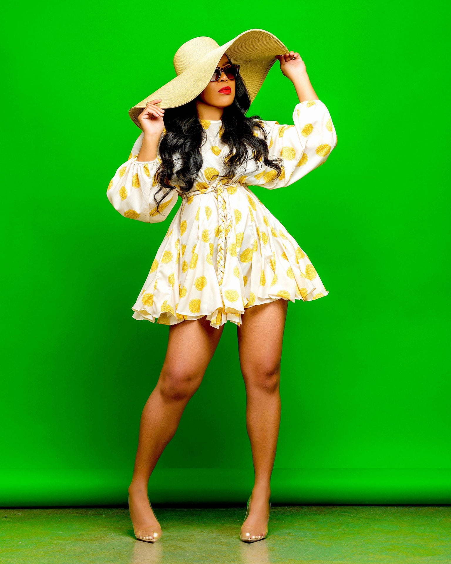 Elevate your wardrobe with this floral printed chiffon bodycon dress, featuring a charming round neckline and elegant lantern sleeves. Crafted from a premium cotton-polyester-spandex blend, the short large swing skirt dress creates a sweet yet sophisticated silhouette, perfect for mini dress party outfits, casual gatherings, or evening events. A versatile piece to showcase dress aesthetic and dress to impress, blending feminine charm with modern elegance.